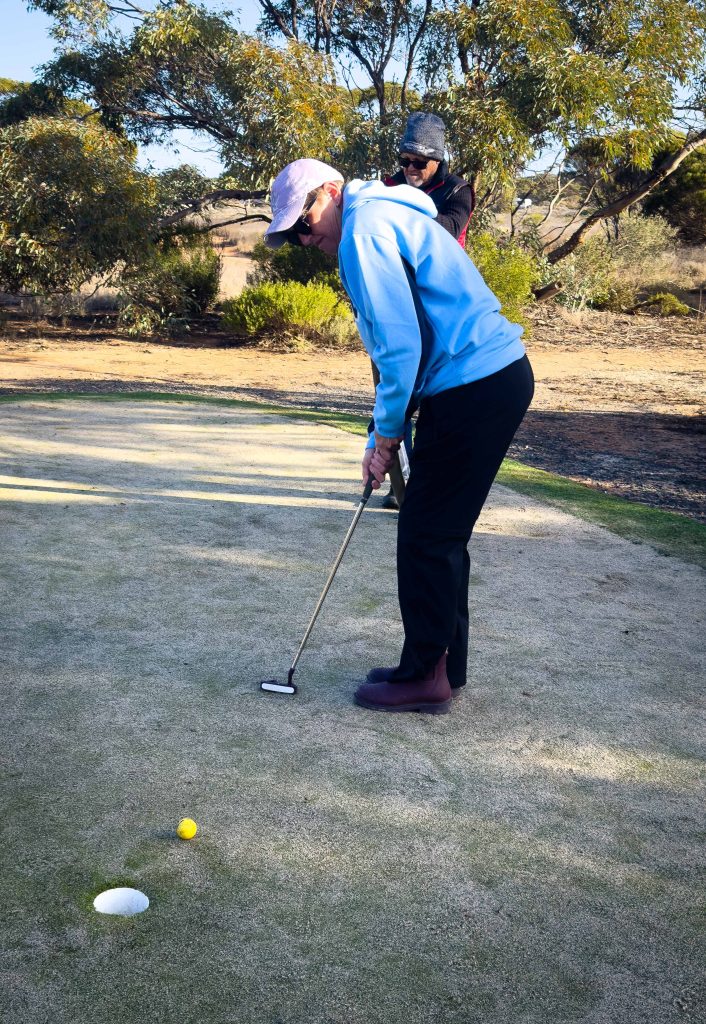 At the end of the straight we were deposited at Balladonia roadhouse for lunch and another hole of golf.  The injured athlete (me, obviously) had to sit this one out but the rest gave their best and Bob was the winner with a score of 6 on this one.