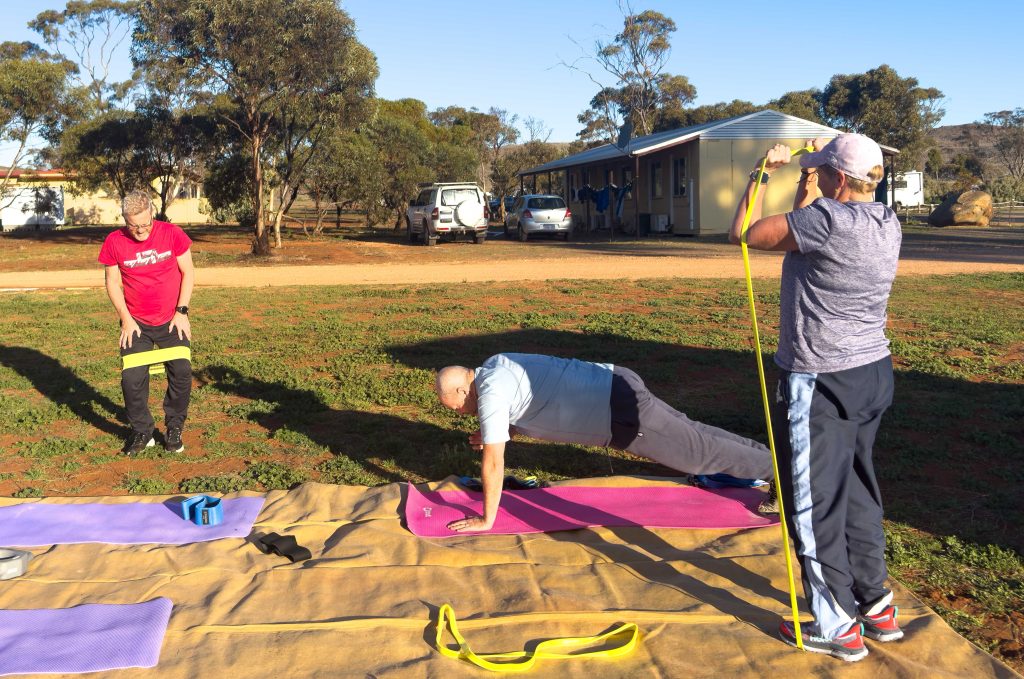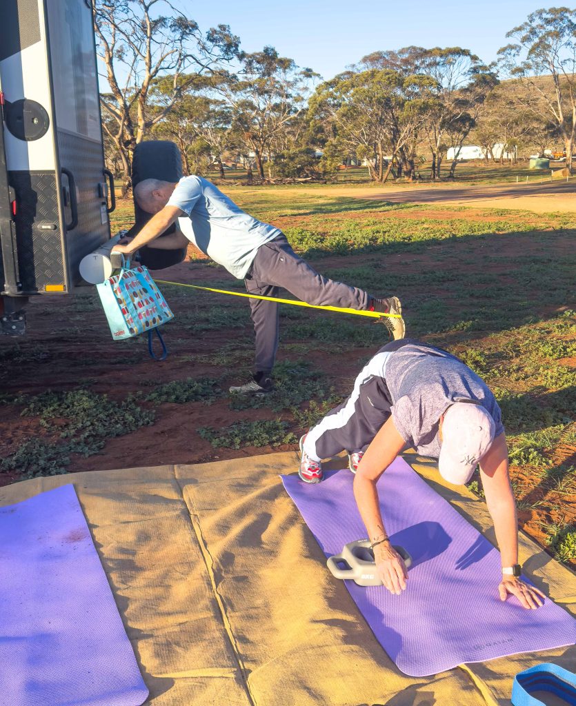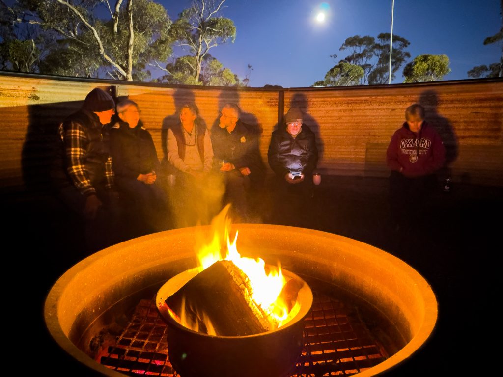 Then it was less than 100km to our camp for tonight at Fraser Range Station.  Lots of campers and facilities which we haven’t seen since the other end of the Nullabor.  Once we arrived it was time to get some exercise in.  The Scott’s hot footed it along a walk at the station while the rest of us suckers did a Tani PT session.  Was hard but really needed after so long sitting and travelling.  We rounded out the evening with some chats at the communal campfire followed by dinner in the camp kitchen (except for the Scott’s who had dinner at the dining room restaurant).  We finished with another game of 5 Crowns won by Kieran.