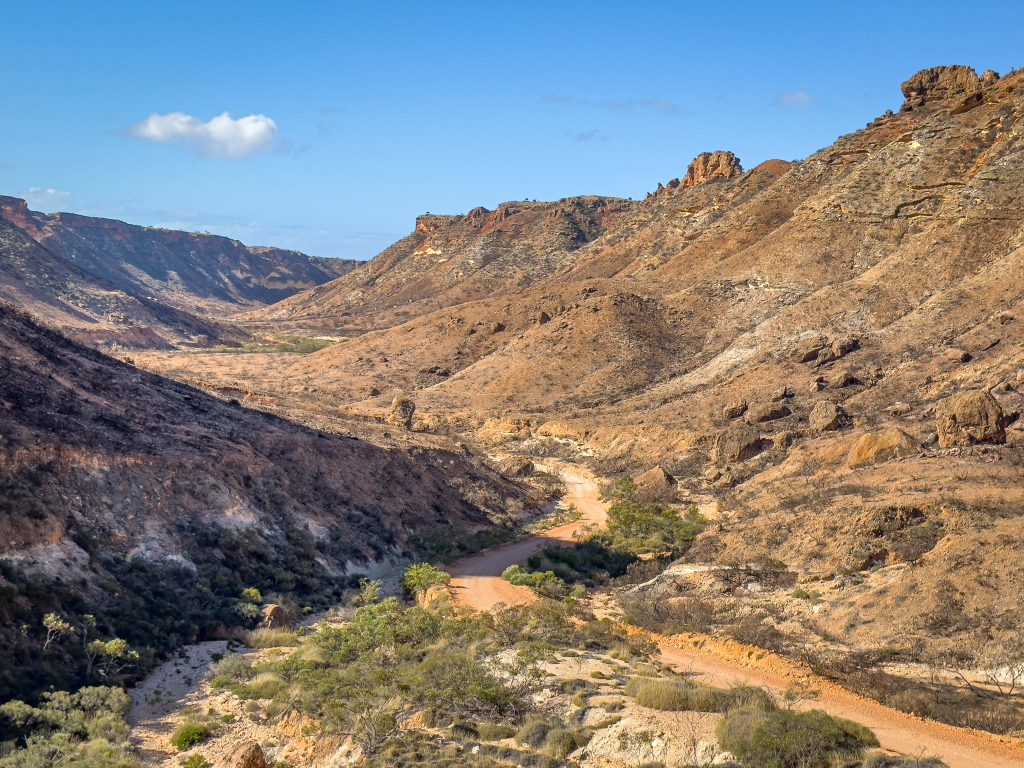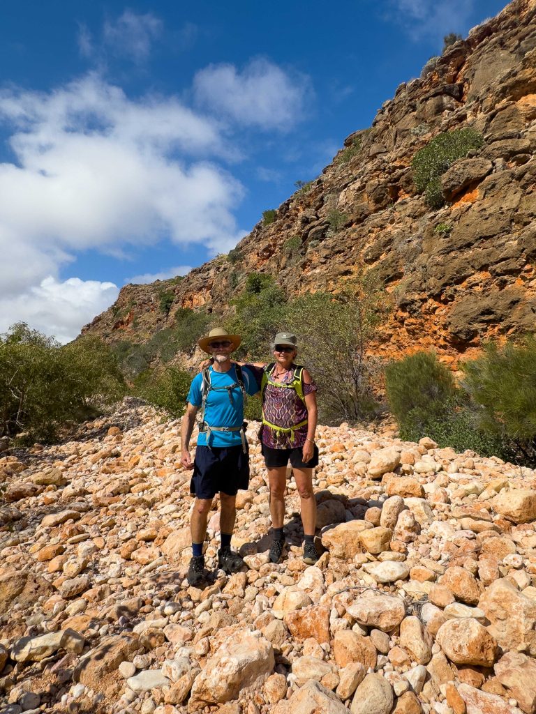 The Scott’s decided to spend the later part of the morning hiking along the Tulki Creek bed to the small gorge up further in the Cape Range National Park. This is not a marked track, however Bob and I decided to come along and it is the first time since we left home 5 weeks ago that we have felt hot when we were out of the wind.