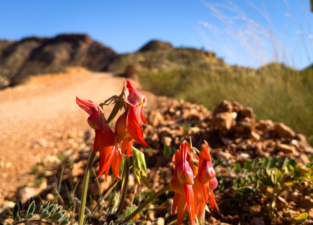 On the way back out I saw my first wild Sturt Desert Peas. All previous ones have been part of a cultivated garden. They are really quite striking.