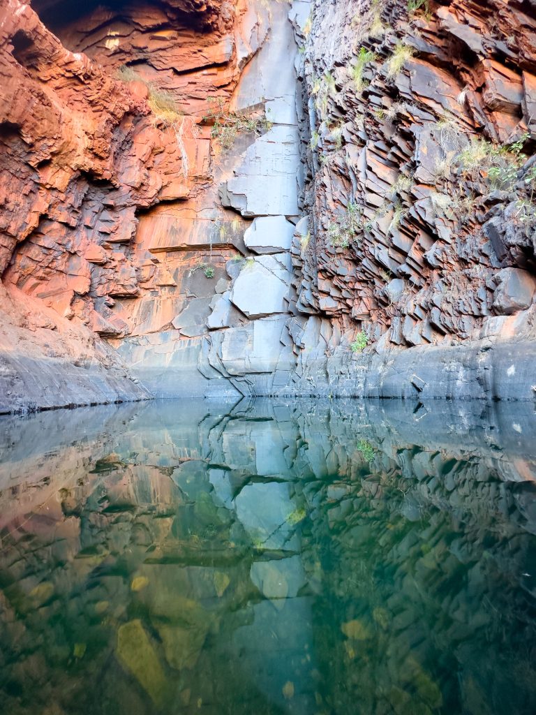 We then drove further and ended up on a short hike along Mussel Pool, where we scaled the rock wall of the pool to get to the Perentie Fall.