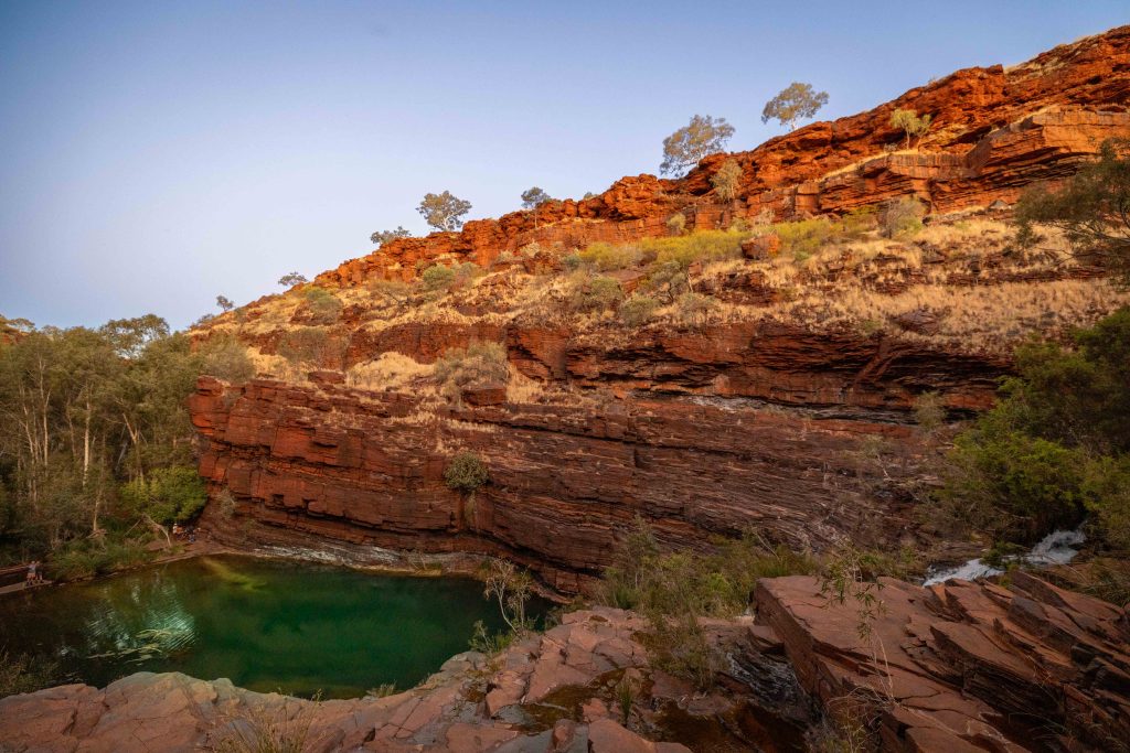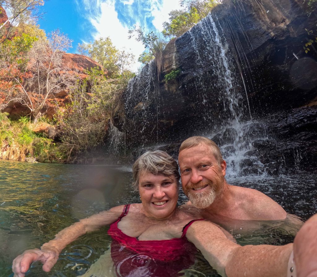 Then it was time to head back (via 300 steps back out of the gorge) and prepare for our next holiday experience. Karen has chosen for her group experience a photo shoot at the falls in Karijini and today was the day! We changed into the designated shoot clothes and retraced our steps back to Fortesque Falls. We took a lot of different photos which I am working my way through, but need to stop in order to get some sleep before an early start tomorrow. But a sneak peak is below.