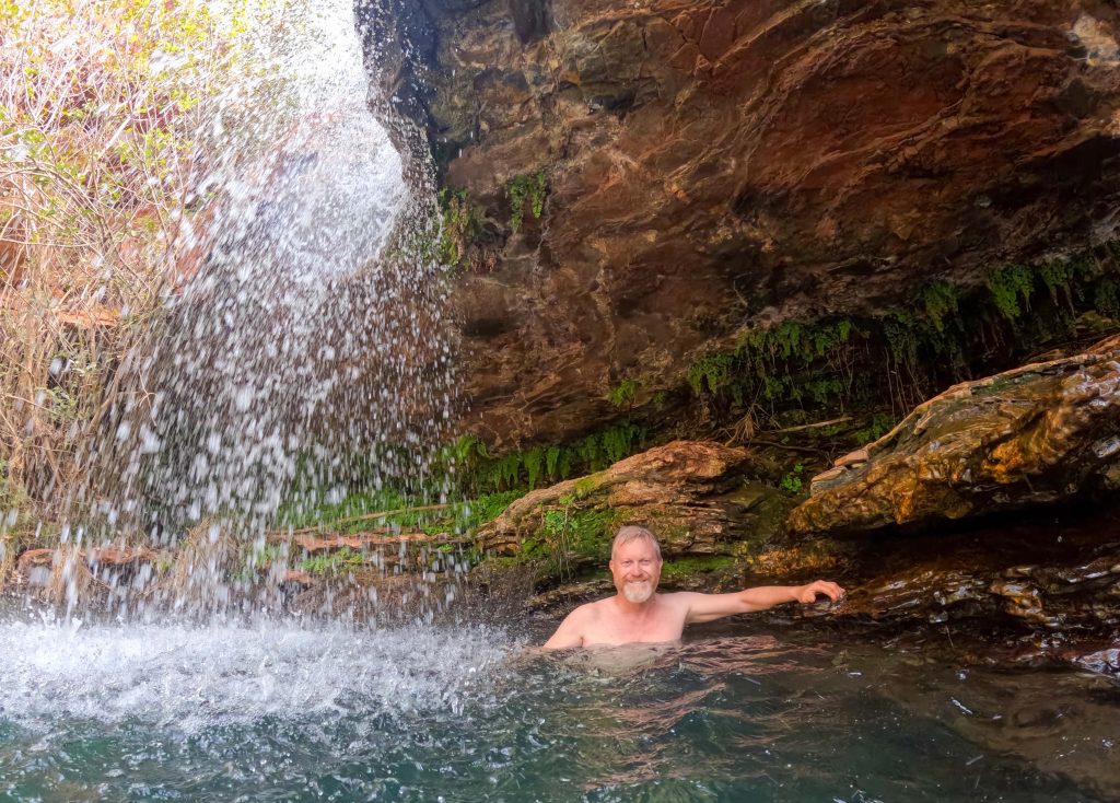 After their early morning exercise, the Scott’s headed out to the Fern Pool for a swim and some relax time. The rest of us left soon after and (not intentionally) did another hike on the way there, so were quite a bit behind. We all enjoyed a swim in the pool with the temperature hitting 30 degrees today. The water at the falls was so much warmer than in the rest of the pool.
