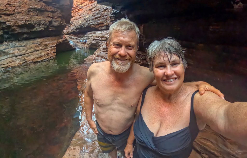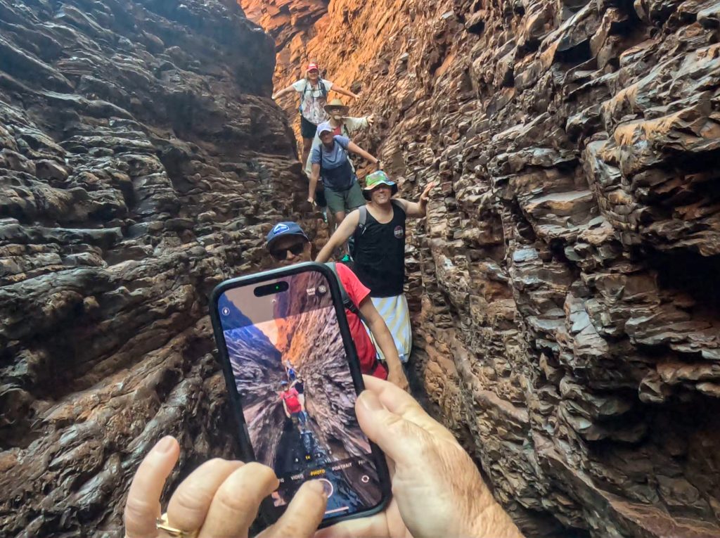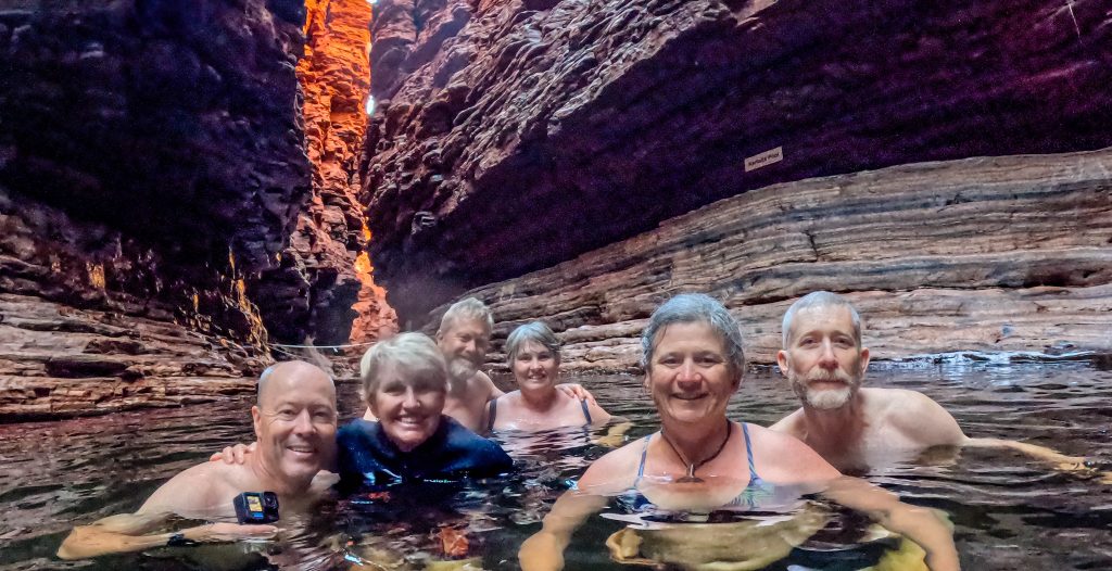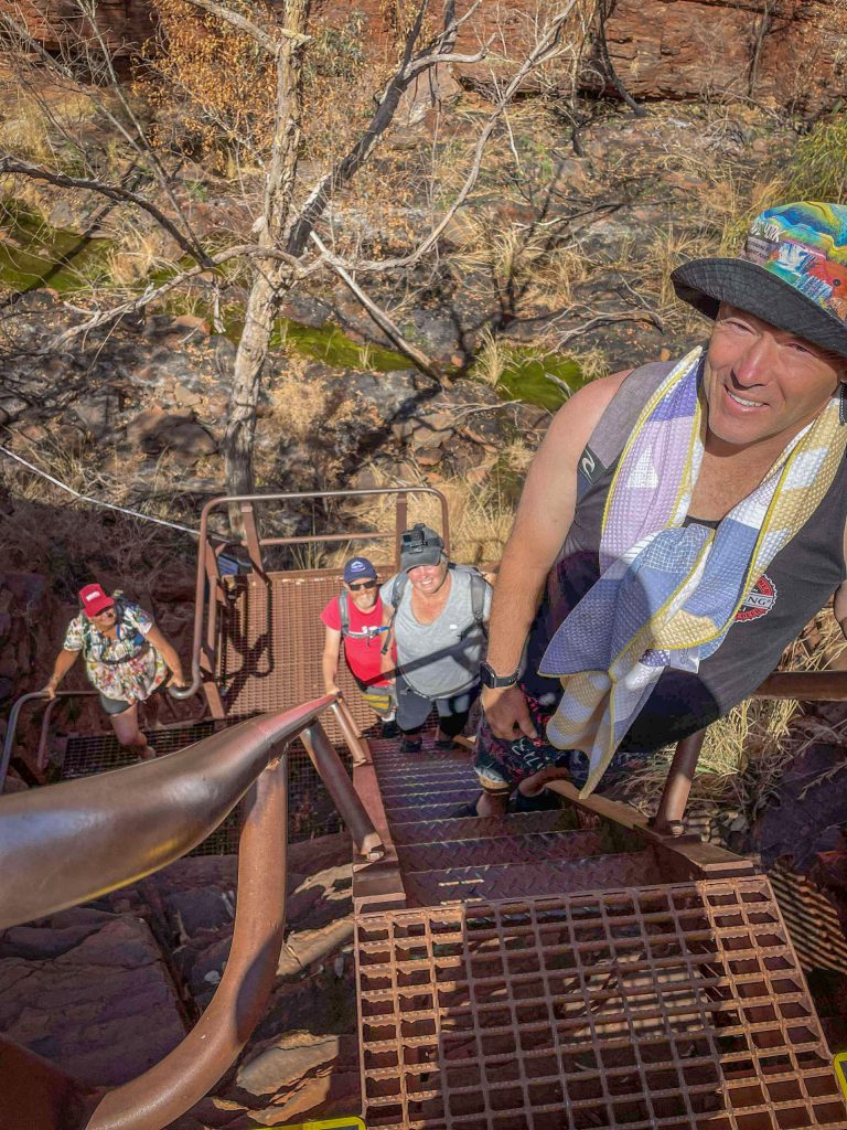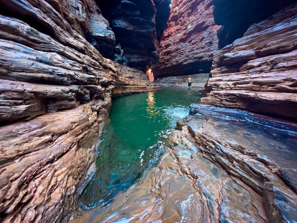 Today was another full one. Sorry but there may be too many photos. First stop was Hancock Gorge where we embarked on a much shorter (than Mount Bruce) Class 5 hike to go through the gorge. We scrambled over large rocks, scaled vertical walls over the water and eventually found ourselves at Kermit’s Pool. The water was unbelievably cold here. I wore my GoPro on my head cause I couldn’t hold a phone while doing this and got some ‘action’ shots 🙂 .