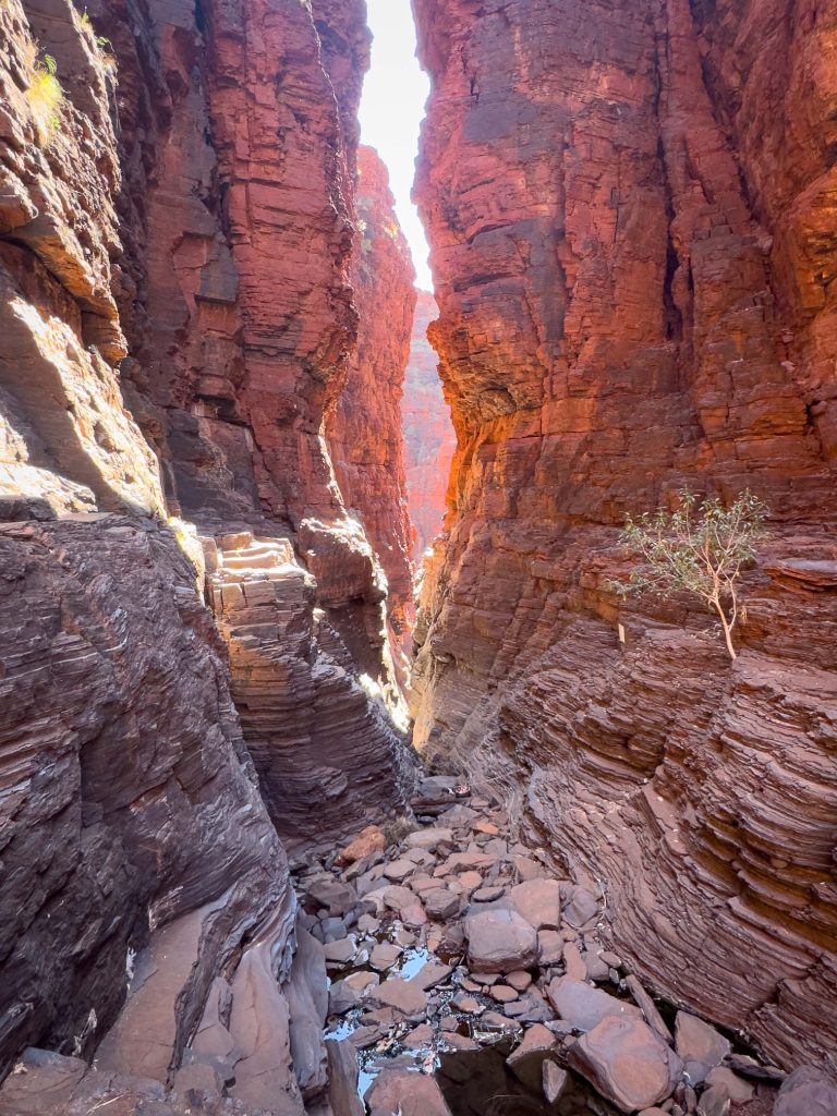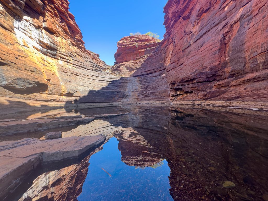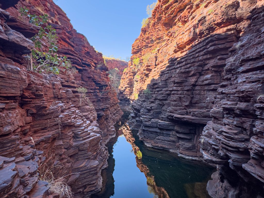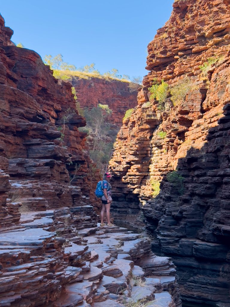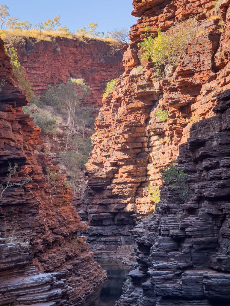 We ate lunch back at the carpark once we’d extracted ourselves from the gorge and then proceeded on to Joffre Gorge. We traversed around the rim of this one before our descent via ladders and rock scrambles. The pool at the bottom was lovely, however I really did love the reverse view down the gorge which we explored on our way out.
