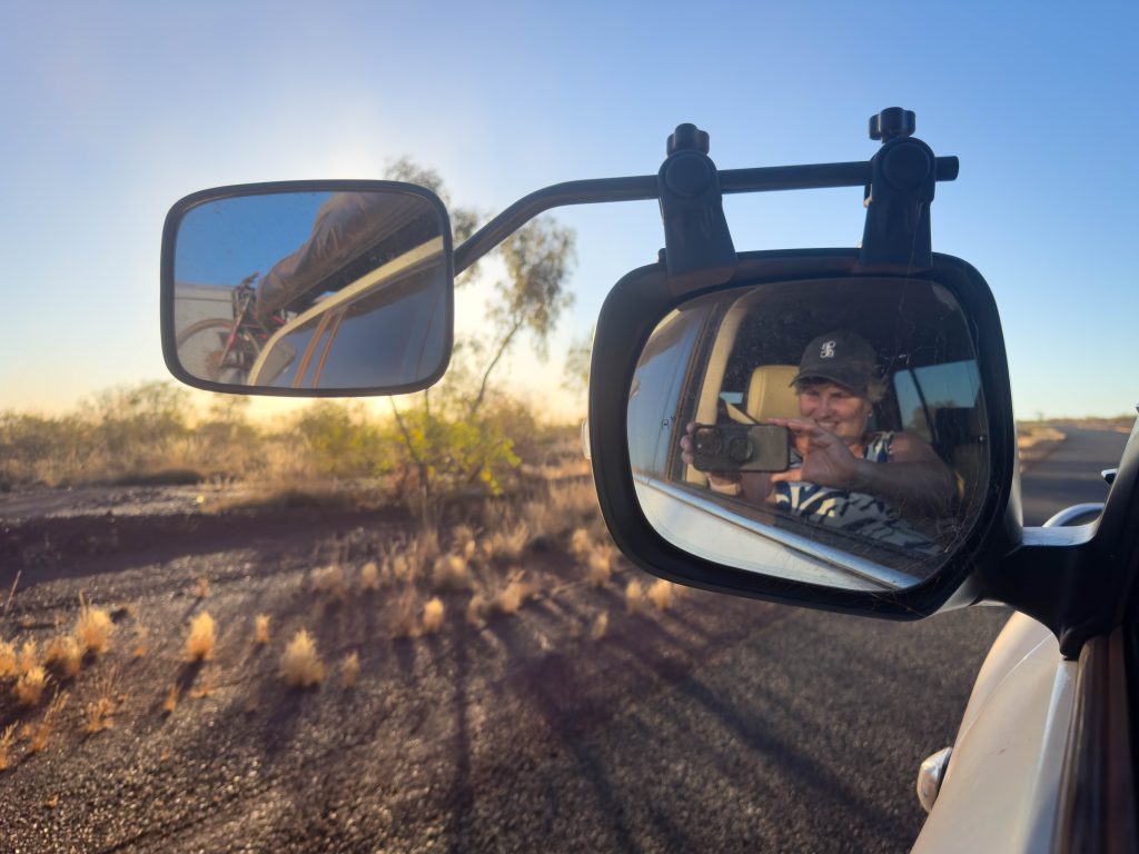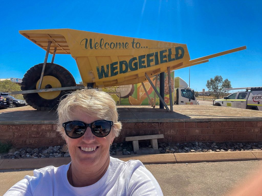 We all left the Karijini area independently this morning. Jase and Sue headed directly to Port Hedland where Sue wasted no time getting her obligatory ‘big’ photo with the Wedgefield Wheelbarrow.