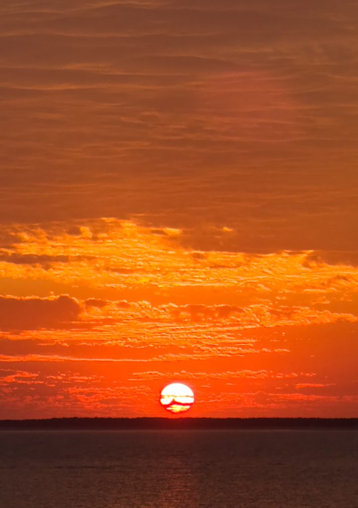 We woke this morning to a fire sky. What’s that saying? Red in the morning, sailor’s warning. Red in the night, sailor’s delight…. Well the red morning happened and it must have been a warning…