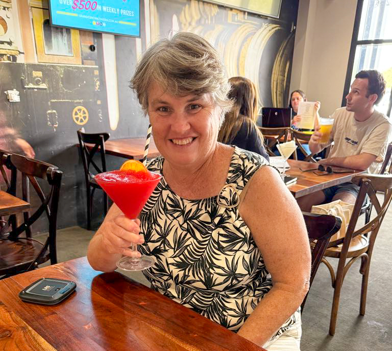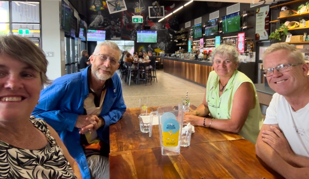 The Scott’s exercised early and Bob and I didn’t. It is 65km to Karratha and we had some new knobbly bike tyres ordered from Queensland through the bike shop for me (so I don’t fall off on our sandy road riding) and amazingly they arrived yesterday. We had planned to have a dinner in town tonight after our cruise but with the bike shop closing at 1pm we rejigged the plan and left camp at 11am to pick them up and then have a long lunch before the cruise at 4pm.