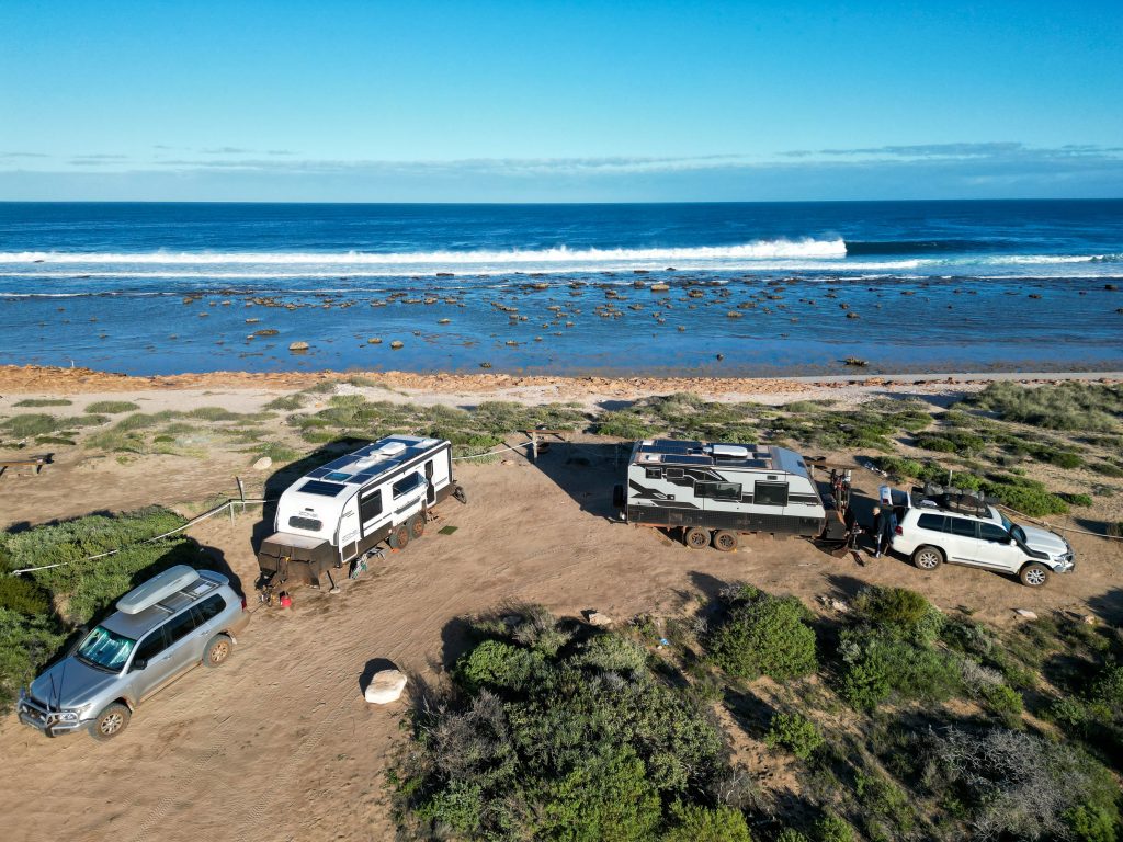 We stopped for a sausage sizzle lunch on the cooker out of the back of the car at a spot with a great view before moving on to the slow going drive in to Goat Cave. Here we came across the Scott’s heading out and after a quick chat confirming we were all enjoying the day immensely, we continued on our way. Once we arrived at the water it was an incredibly steep walk down a very big sand dune to get to the bottom. The trek was worth it though. Great scenery once again.