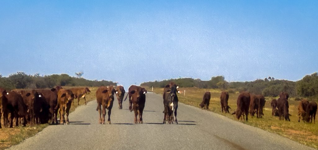 We drove with Jase and Sue to Gascoyne Junction on one of the most boring roads on this trip. 170km of scrub and red dirt. The only point of interest along the way is a rocky water hole in the river, but it only has water after rain so we assumed it was dry. We did have to have our wits about us though because the road out here doubles as a cow paddock, and one herd decided to hold their ground and stand across the road eyeballing us. We are thinking they are naughty teenagers.