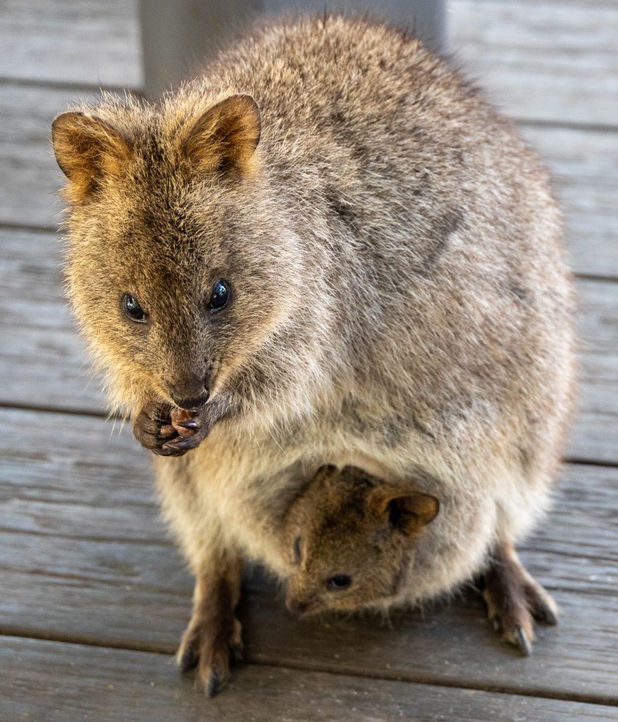 Sadly, these super cute little beings are way too comfortable with people forcing themselves on them for selfies etc. I enjoyed making good use of my zoom lens to get shots of them in their natural space. Having said that, I couldn’t make a beeline quick enough for the one with a baby in its’ pouch which broke the quokka fence and made it inside the bakery area….