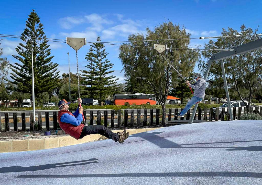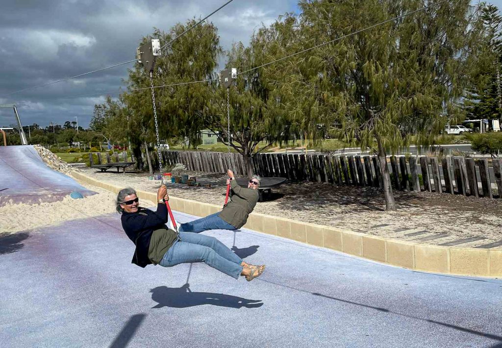 We then enjoyed a relaxed lunch at the brewery before calling in to Bunbury for a look around the town. Shenanigans at the local playground as well as local sculpture art was on display. Sue very kindly stepped up to fill in for the lifesavers that weren’t on duty 🙂 .