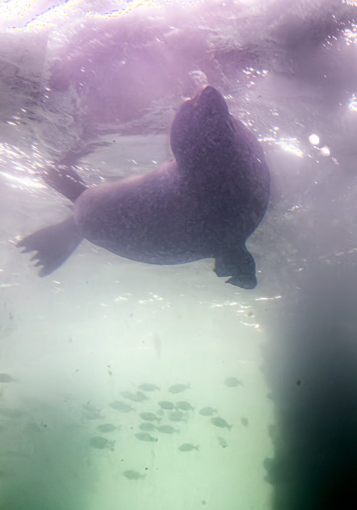 When we finished the ride we went straight into a tour of the Busselton Jetty underwater observatory that included transport on the  cool solar powered tourist train to the end of the 1800m jetty. The observatory lets you walk down inside a concrete cylinder and look through windows at the marine life at the different water levels as you drop from the surface of the water down to the sea floor in 8-9m of water. The observatory included a lot of educational information around the marine life at the jetty, and the influence of the Leeuwin current which brings warm water from the north. The highlight at the surface was Cecelia the sea lion, who hangs around the observatory after the observatory staff helped save her a few years ago. The marine life varied at each level, with colourful growth on the old timber pylons and fish life at each level. Kerri comment – it was so good not to be freezing and wet observing this 🙂 .