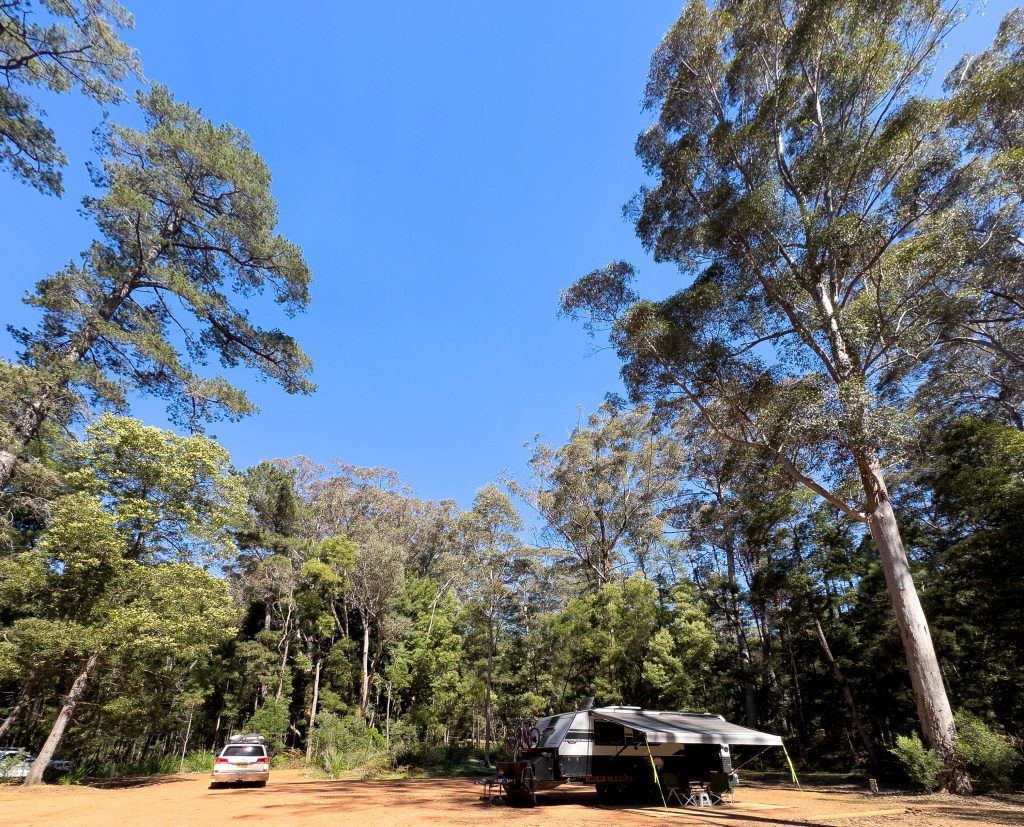 Once pies were devoured (I joined today as there was actually a vego option), it was time to move on to Pemberton. This town is well known for its Karri forests. We are staying in the middle of a forest and happily while there are heaps of trees we have still managed to maintain enough sky for solar charging and starlinking.