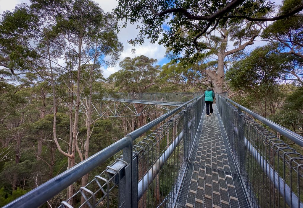 It was pushing close to lunchtime by now so we flicked on the car ovens and heated pies as we continued east. Once our quick lunch stop was out of the way we beelined through to the Valley of the Giants. There is a treetop walk here that looks over the massive tingle eucalyptus trees. Very different to the karri and marri trees around Pemberton. They have shallow roots with a resulting large base to the trunk. Over years the trunks hollow out through fires, disease, fungus etc – making for great photographic arches.