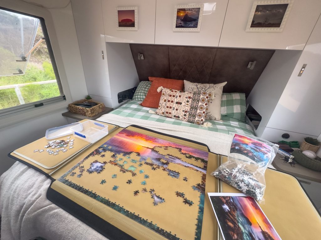 Today was cold, cloudy and windy with the odd shower. We didn’t rush to leave our van at all. I even managed some more jigsaw time – the first since the rain in Kalbarri. A cooked late breakfast classified as a brunch before we ventured outside.