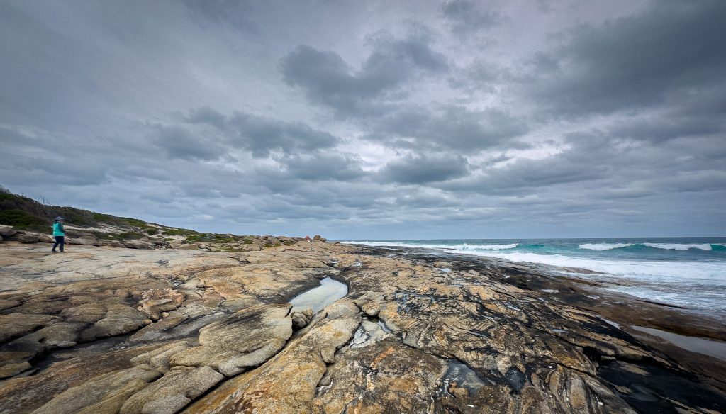 Once we touched base with Karen and Kieran the decision was made to head to Munglinup Beach, about half an hour east. The weather wasn’t beachy, but the rock pools and rock layers were so good to explore.
