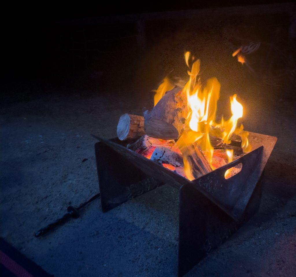 Bob and Kieran watched the football (which started at 430 here) while Karen and I did puzzles in front of the fire at their van. We had a lovely colourful sunset followed by a light dinner in front of the fire. Rain is still intermittent but generally hasn’t impacted us today too much at all.