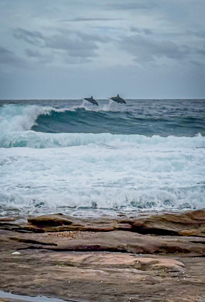 A bit blurry but Karen managed to capture the dolphins popping out the top of the waves