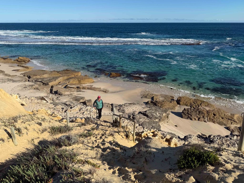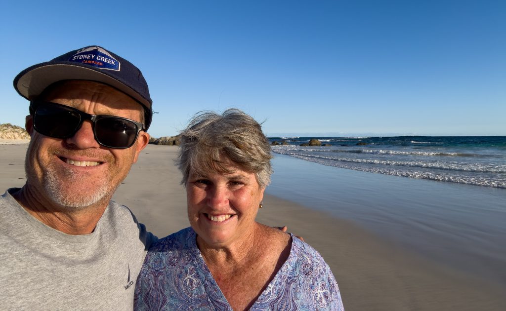 We enjoyed the 3 hours of kayaking and lunching on the Phillips River canoe trail. There were cliffs of tilted schist and veins of quartz that looked great. The return trip from Hopetoun to Starvation Bay had detours into every available beach or camp access. So many miles of beach! 2 mile, 5 mile, 12 mile. Many had reefs and interesting rock or sand formations. Sitting at the fire now with the full moon creeping up the sky.