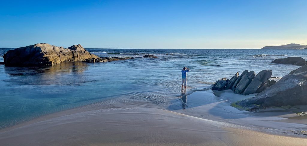 After that debacle we decided to head out to do some photography at the local beaches in the Fitzgerald River National Park. This is the park that we accessed from the west a few days ago (and I failed to complete the climb). There are a number of points of interest at the eastern end of the park which we are well positioned to see from here. At our first stop we wandered to the beach and saw a massive southern right whale just off the breakers. Bob kindly ran back to the car and got the drone for me. It went up and I was amazed to see the newest little baby calf with its mum. See how wrinkled the baby is – it needs lots of milk to build up fat stores. All the shots of the calf on mum are her lifting it up to make sure it learns how to breathe. So amazing! Photos are on camera zoom and then cropped to maintain stress free distances from these beauties.