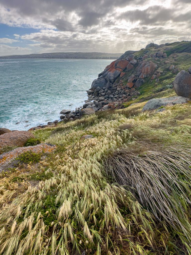 Traversing through the suburbs was a bit slow going though so it was around 330pm when we rocked up in town. We were keen to get out and walk to stretch the legs after over 300km of travel today (even though it’s still super windy), so did a 7.5km walk to town, across the Granite Island Causeway and around the island. Great views and rocky landscapes. The island is home to a colony of little penguins, but despite our efforts we weren’t able to see any.