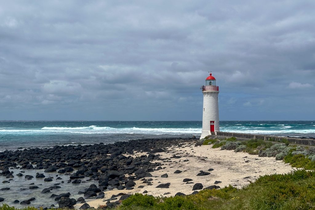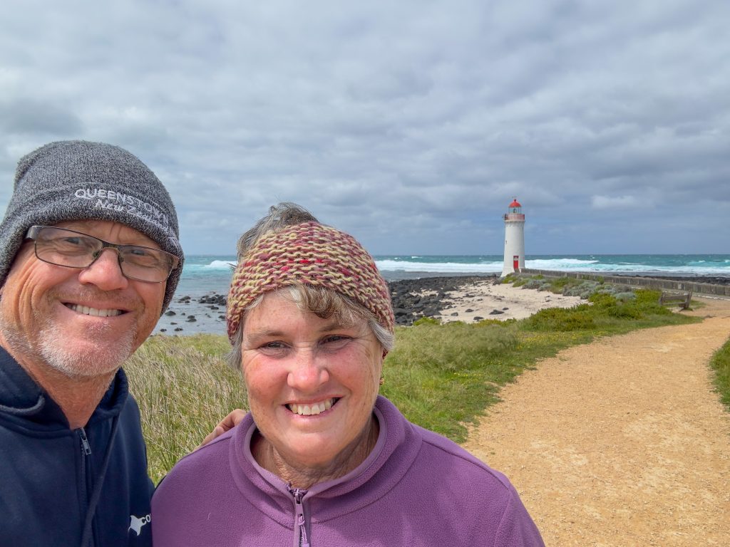 Another hop through to Port Fairy when the weather was still the same. We braved the wind and headed out for a walk to the lighthouse. We decided not to complete the circuit of the peninsula and just did the out and back walk. One of the prettier lighthouses we’ve seen this trip.